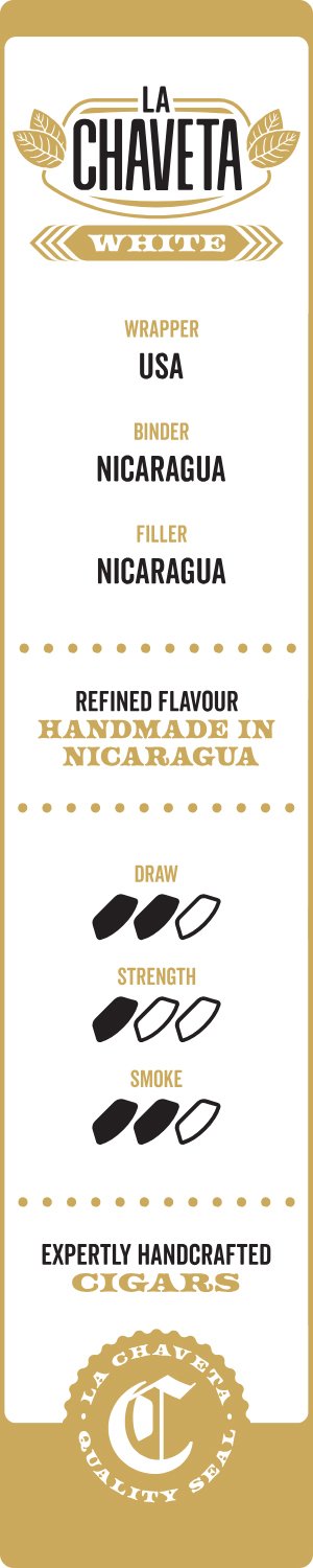 Die erste Serie der neuen Marke trägt den Namen La Chaveta White. Mild und aromatisch sollte sie sein – und genau das ist sie geworden. Gleichzeitig entfaltet sie eine faszinierende Tiefe, die sie ihrer besonderen Einlage aus ausschließlich nicaraguanischen Tabaken aus Estelí, Jalapa und Condega verdankt. Das ist Zigarrenblending aus Nicaragua auf höchstem internationalen Niveau.