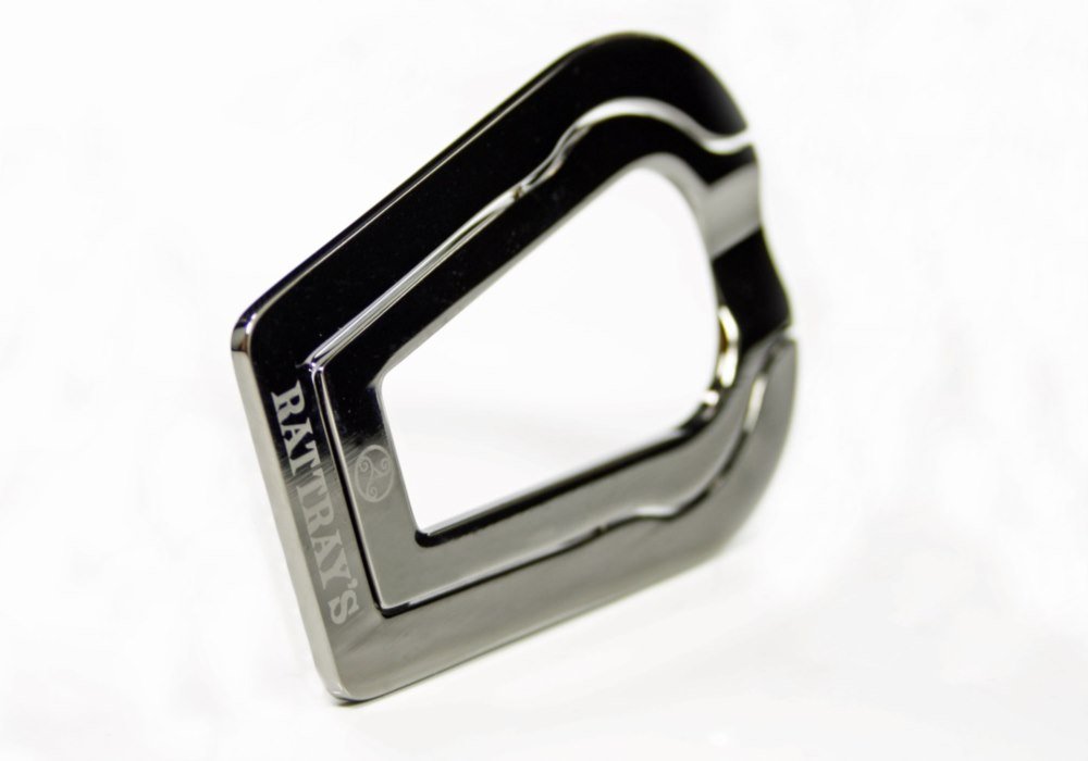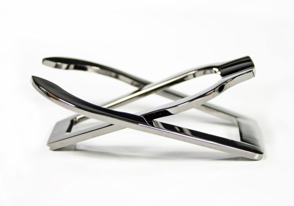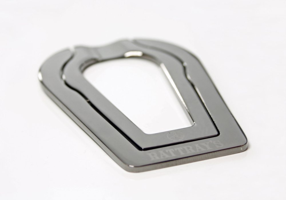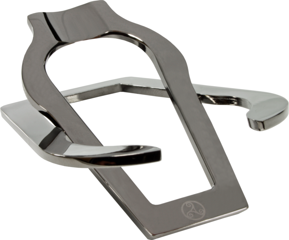 Faltbarer Pfeifenständer aus Messing im Gunmetal Look. Mit gelasertem Schriftzug in einem kleinen Etui. Extraflach, aber dennoch stabil. Für Büro, zuhause und unterwegs.