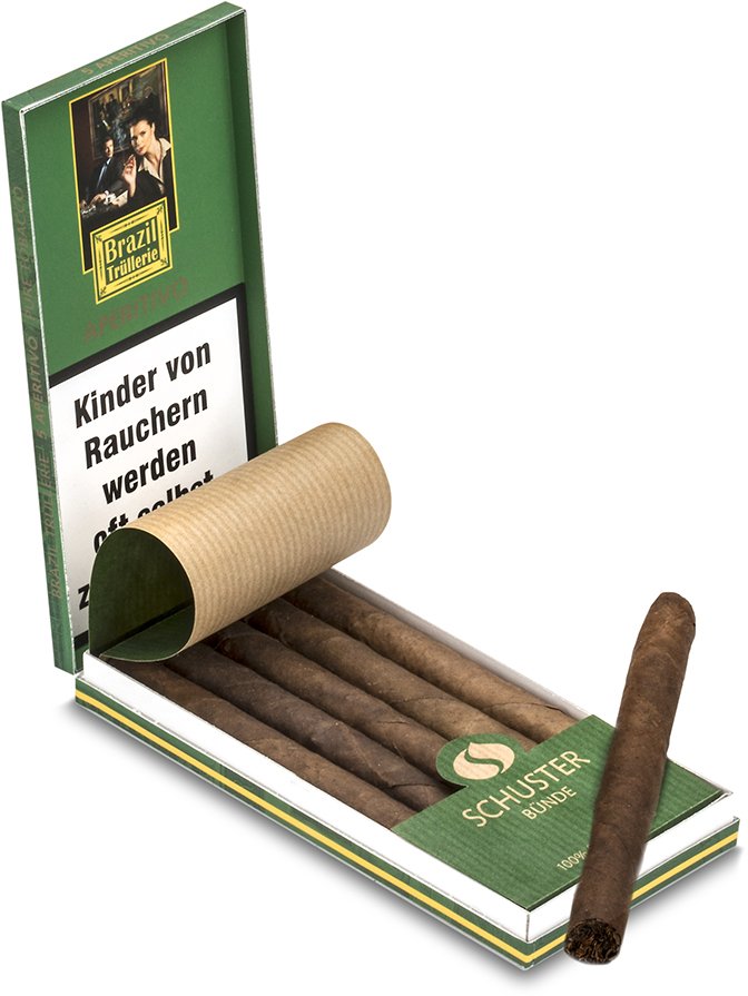Olli Entgegen der gängigen Größenangabe ist die Aperitivo ganze 130mm lang. Dadurch erklärt sich dann auch der Preisunterschied zur „Morning“ dieser Reihe. Ansonsten gibt es keinen großen Unterschied. Die ersten Züge sind etwas bitter, aber im weiteren Verlauf kommt eine schöne Brasil-Würze auf. Wenn man „brasilianische“ Shortfiller mag, kann man mit der Brazil Trüllerie-Serie von Schuster anscheinend wirklich nicht viel verkehrt machen. Ich persönlich präferiere in diesem Segment aber weiterhin die leider deutlich teureren De Olifant Bahia Brasil. NACHTRAG: Ein Aufenthalt im Humi lässt die Apperitivo deutlich milder werden.