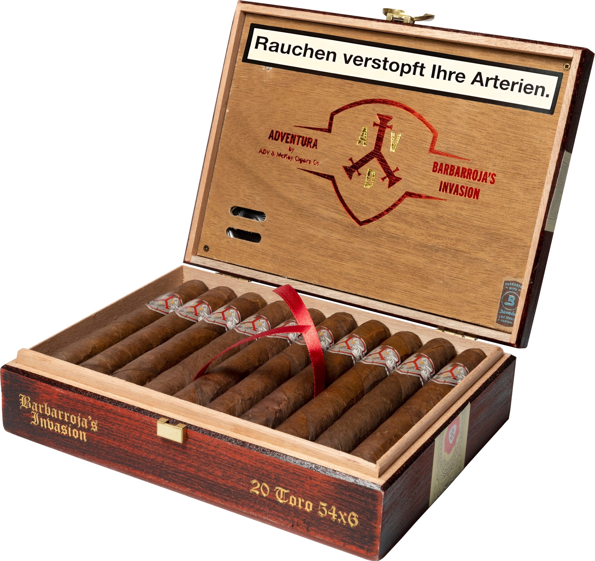 Die Marke wurde ursprünglich als Adventura Cigars bekannt und entstand 2016 durch eine Kooperation zwischen dem Schweizer Sommelier und Zigarrenhändler Marcel Knobel und Henderson Ventura von der Tabacalera William Ventura. Ärgerlich ist es, wenn man aus markenrechtlichen Gründen dann den Namen in ADV Cigars & McKay ändern muss. ADV Cigars & McKay? Wahrscheinlich kommt der Name aus der Leidenschaft für düstere Geschichten aus alten Zeiten. Die verschiedenen Zigarrenlinien des Hauses sind nämlich angelehnt an fiktiven Abenteuern von ADVentura und seinem Gefährten McKay, die im 15. Jahrhundert gemeinsam verschiedene Abenteuer auf der ganzen Welt erleben. Wer schon einmal auf Kuba war, kennt die teils grausamen Geschichten der Piraten, die fast jedem Handelsschiff ein Loch in die Planken bohrten. Die Barbarroja's Invasion Toro ist Teil der Barbarroja's Invasion-Serie von ADV & McKay, die die Geschichte eines fiktiven Piratenkapitäns erzählt, der die Karibik erobert. Die Zigarre selbst ist eine Hommage an die Stärke und Entschlossenheit des Kapitäns. Die Barbarroja's Invasion hat ein mexikanisches San Andrés-Deckblatt, verfügt über ein dominikanisches Umblatt und eine dominikanische Einlage. Das Besondere: Wir finden hier auch einen Medio-Tiempo-Tabak. Produziert wird das Ganze in der Tabacalera Henderson Ventura in der Dominikanischen Republik. Die Barbarroja besitzt ein dunkles, öliges Deckblatt, ist gut gerollt und hat eine feste Form. Allerdings liegt sie für eine Toro sehr leicht in der Hand. Der Kaltgeruch ist schokoladig, erdig, mit Noten von Kaffee und Pfeffer. Ihr Kaltzug sehr leichtgängig, mit einem Hauch von Süße. Die Zigarre beginnt mit einer schönen, weichen Mischung aus Holznoten, Schokolade, Erde und Kaffee und wirkt noch etwas mild. Im Hintergrund findet sich eine cremige Süße, eine leichte Blumennote und eine Prise schwarzen Pfeffers. Zum Ende des ersten Drittels trägt diese Zigarre kräftiger auf und wirkt komplexer. Eine süße Holznote erscheint in der Geschmacksstruktur, zufälligerweise genau zu dem Zeitpunkt, als die Asche zum ersten Mal in Richtung Hose fällt. Der Mittelteil ist geprägt von Noten aus Leder, Zeder, Nuss und einer leichten Süße. Gepaart wird das Ganze zwischenzeitlich mit einer grasigen Note, verkohltem Fleisch und Honig. Retronasal bringt sie einen erdigen Geschmack mit sich, gefolgt von einer langen, leicht süßlichen Blumennote, die von einer leichten Pfeffernote begleitet wird. Hier wirkt sie sehr kräftig und ich denke sie ist für einen Anfänger keine geeignete Wahl. Auf der Zielgeraden hat sie noch etwas mehr Kraft und einen schönen Pfefferkick, besonders retronasal. Aromen von Gewürzen, Holz, Lakritz und leichter Bitterkeit tummeln sich im Gaumenbereich. Der Hauch von Süße aus den ersten zwei Dritteln ist verflogen, dafür schmecke ich etwas Gras, Lakritz mit einigen dunklen Fruchtnoten. Ihr Abbrand war gleichmäßig und sauber, das Rauchvolumen sehr üppig und cremig. Persönliches Fazit: Die Barbarroja's Invasion ist wunderbar komplex und ausgewogen im Geschmack. Der leichte Abbrand und das üppige Rauchvolumen machen die Barbarroja's zu einem runden Genuss. Zusammenfassend ist die ADV & McKay Barbarroja's Invasion eine einzigartige und charaktervolle Zigarre, die Liebhabern kräftiger Zigarren gefallen wird. Sie bietet eine gelungene Geschmacksmischung mit Noten von Schokolade, Erde, Kaffee, Leder und Gewürzen. Eine einzigartige Zigarre mit Charakter, die ich wärmstens empfehlen kann! Ein fantastischer Stick...
