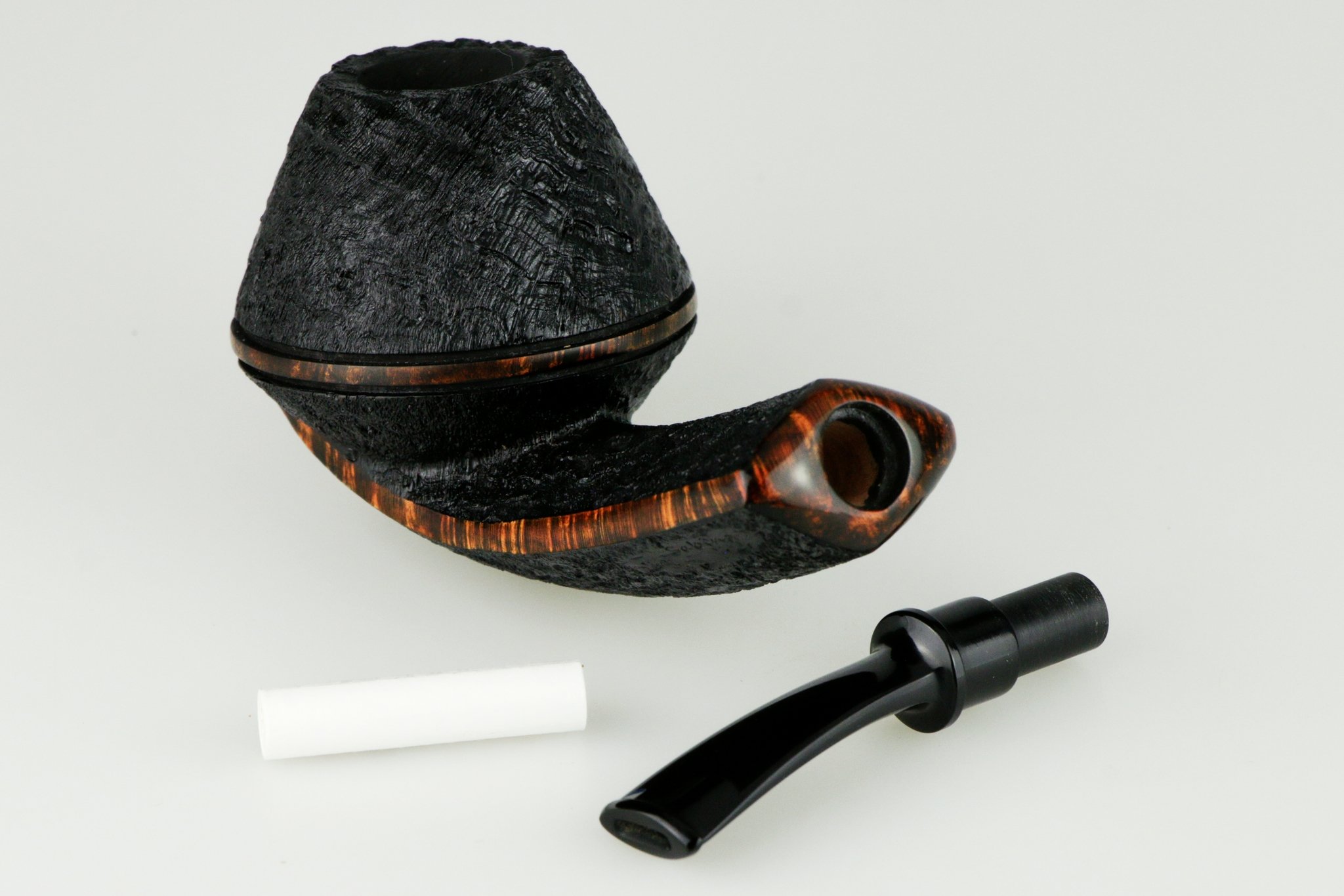 - Sandblasted Bent Apple with Black and White Ebony