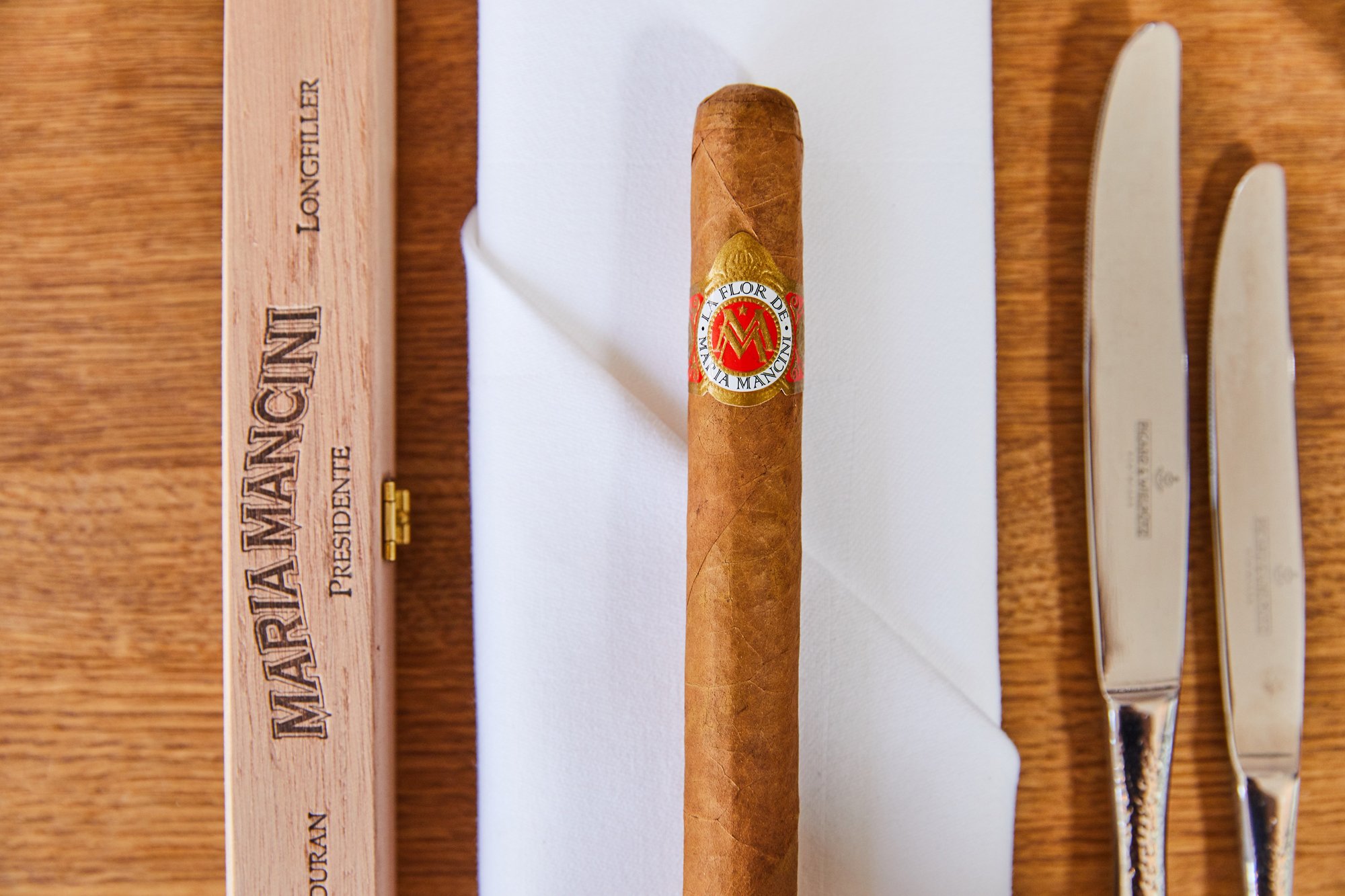 Maria Mancini - great cigars for good price as usual. Only this time you have it with an extra portion. Smoked this stick for about 90 minutes. It is big, but very easy to smoke. A lightish cigar. Easy to light and the burn is pretty much even along the whole duration. Ash building is decent, and the consistency too. Amount of smoke is good considering the length of it, and yes it does get better after you reach the middle. Taste is Maria Mancini classic - fruity, grassy, creamy, a bit sweet, nutty. A light blend with a gentle touch on the senses. Not a luxurious experience, but definitely a great day to day smoking experience. All in all it feels like your guests canceling but you don t mind because you want to binge on Die Hard on Netflix and now you have the whole pizza just for yourself. Nice:) Will I smoke it again? Yes I will. Do I recommend it? Yes - but if it is your first Maria Mancini, try a smaller size first. Peace and love!