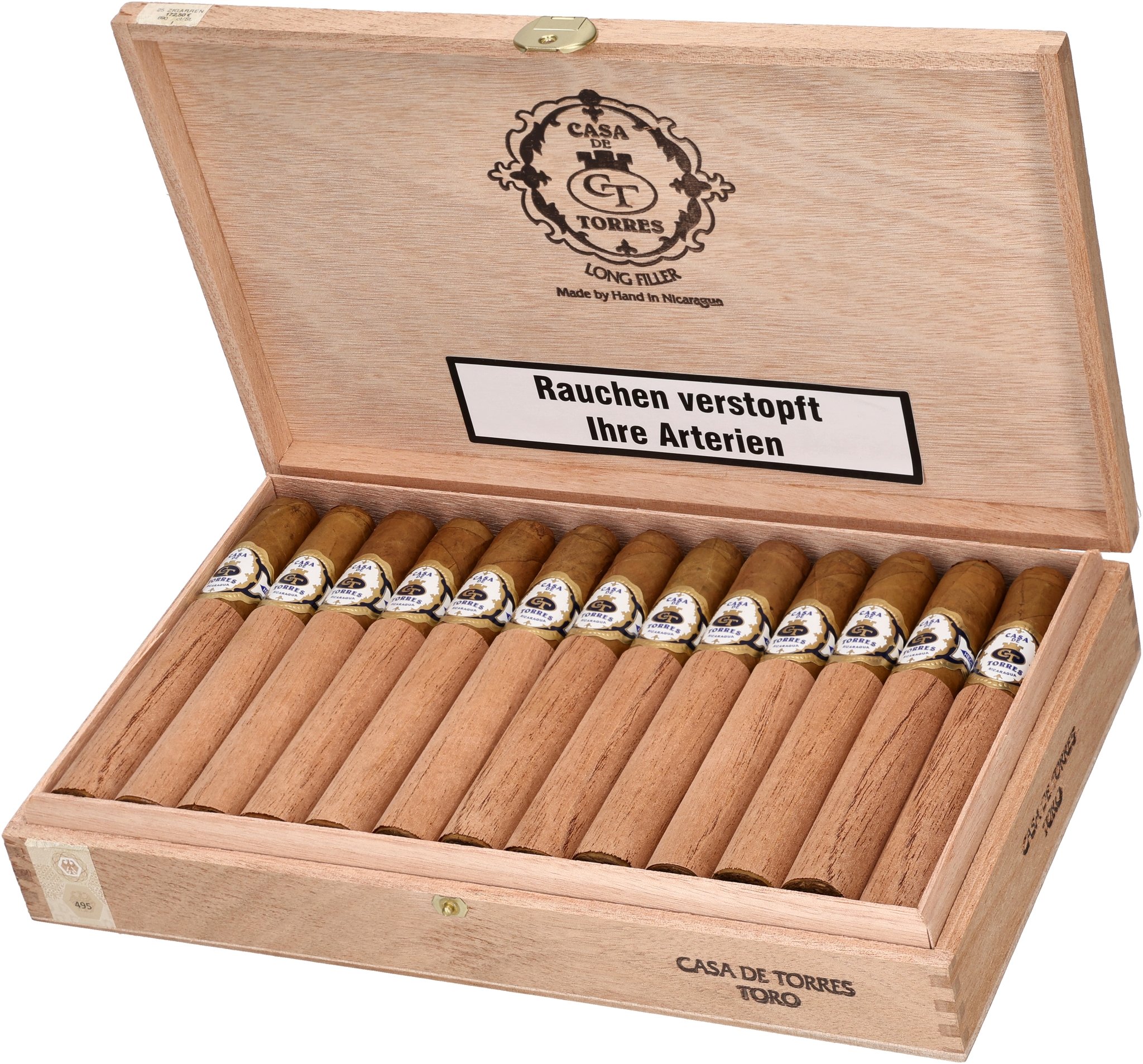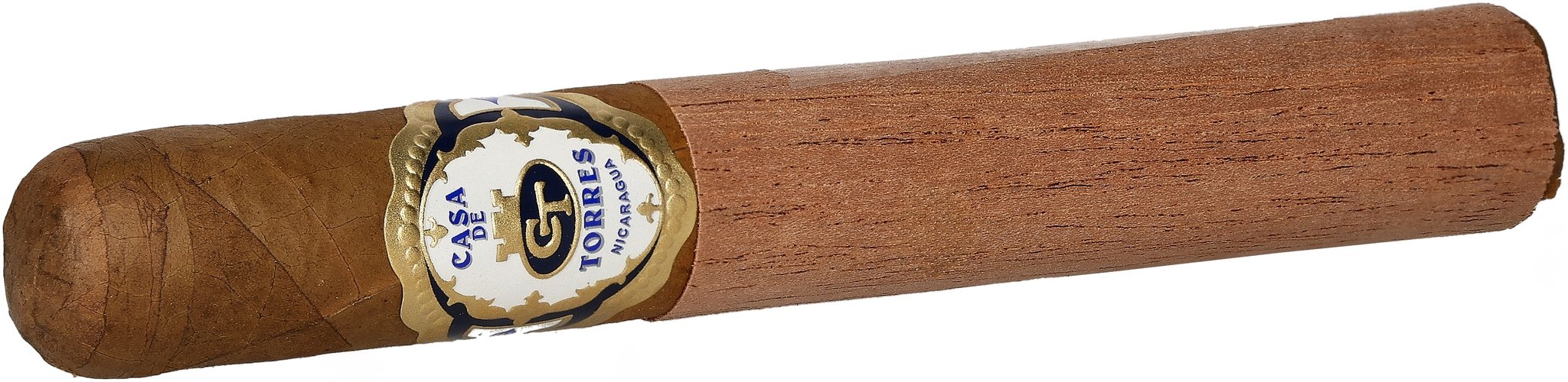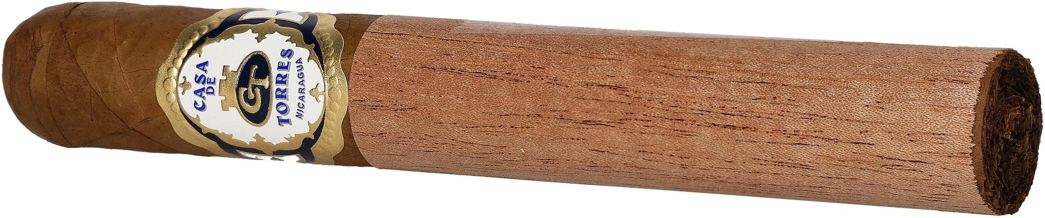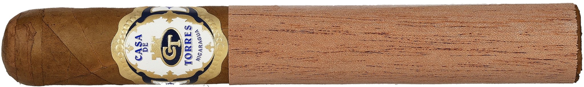 Das Deckblatt ist auch hier ein Connecticut aus Ecuador. Einlage und Umblatt kommen hingegen aus Nicaragua. Mit ihrer Länge von 15,24 cm und einem Durchmesser von 1,98 zählt die Casa de Torres Toro zu den etwas größeren Exemplaren dieser Serie und ermöglicht einen Rauchgenuss von bis zu zwei Stunden.
