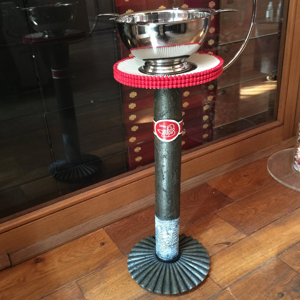 Der Stinky Ashtray Standaschenbecher Hand Painted Stand ist 78cm hoch. Der Fuss und der Teller sind jeweils 22cm breit und lang.