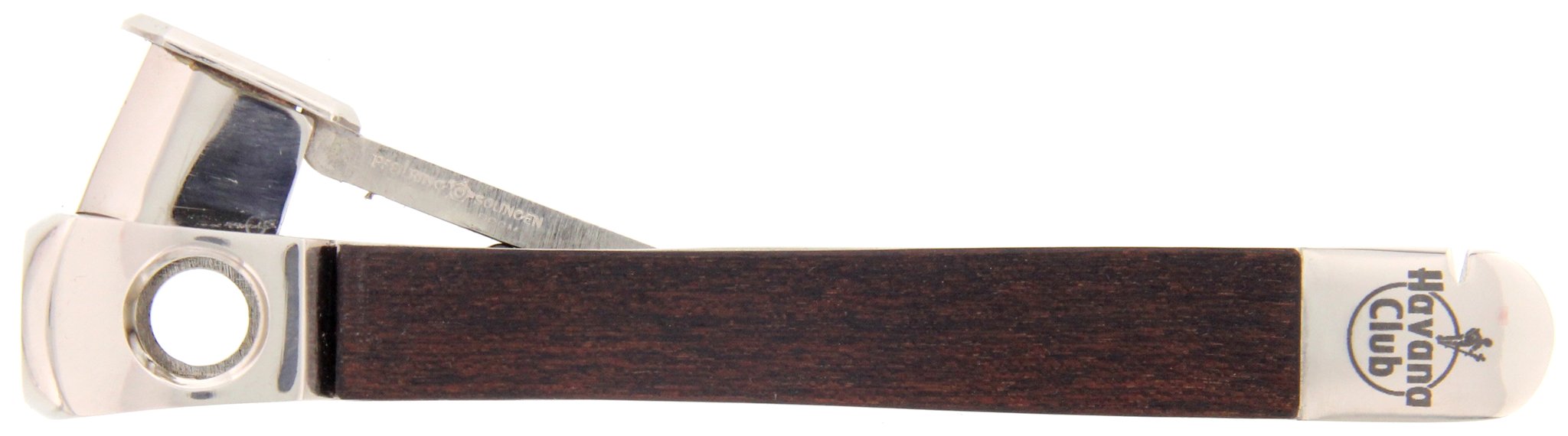 Wolfertz CTS V-Schnitt (Kerbschnitt) Zigarrenabschneider GROSS Holzapplikation versilbert (Marke Pfeilring mit Havana Club Logo unten)