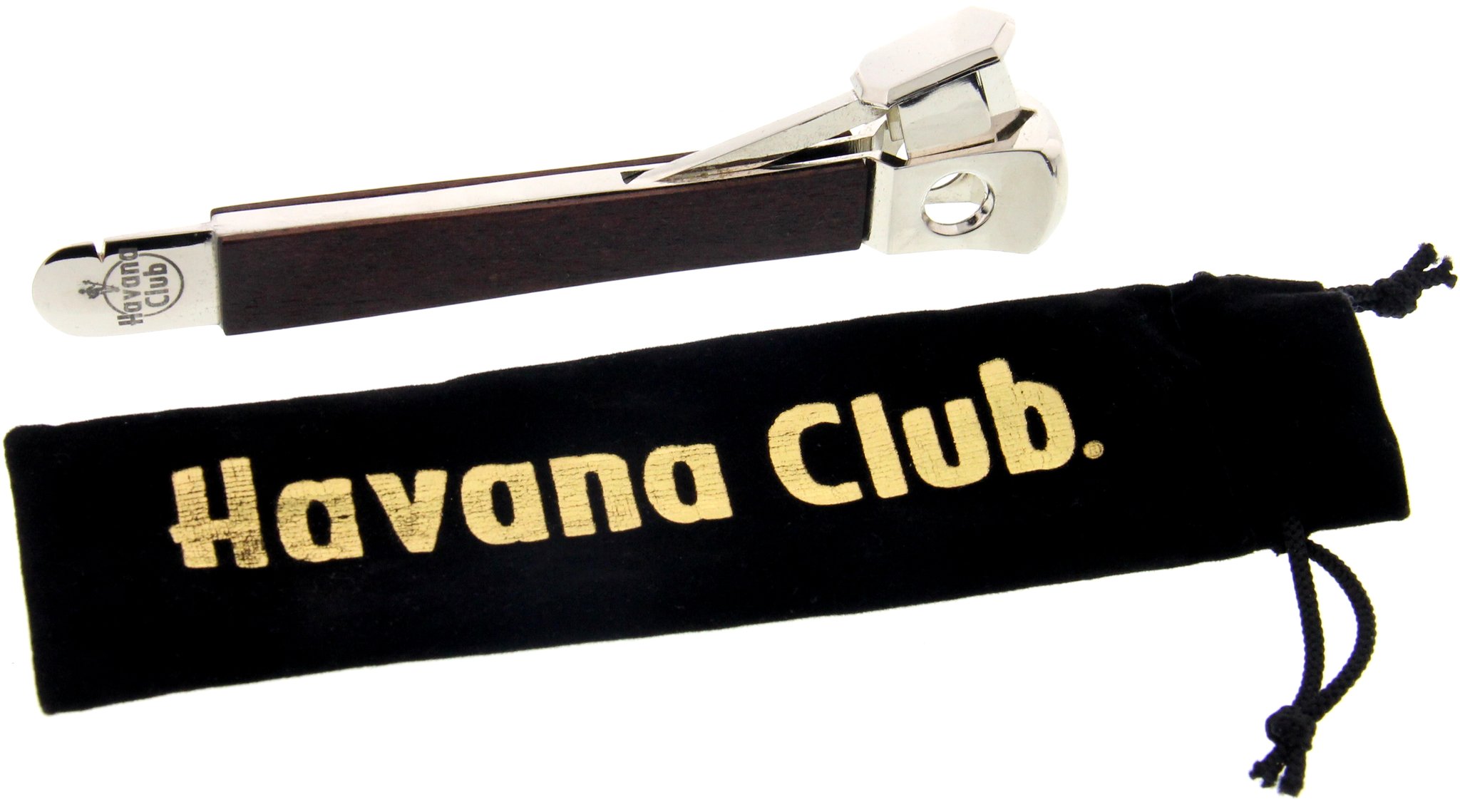 - Zigarrenabschneider GROSS Holzapplikation versilbert (Marke Pfeilring mit Havana Club Logo unten)